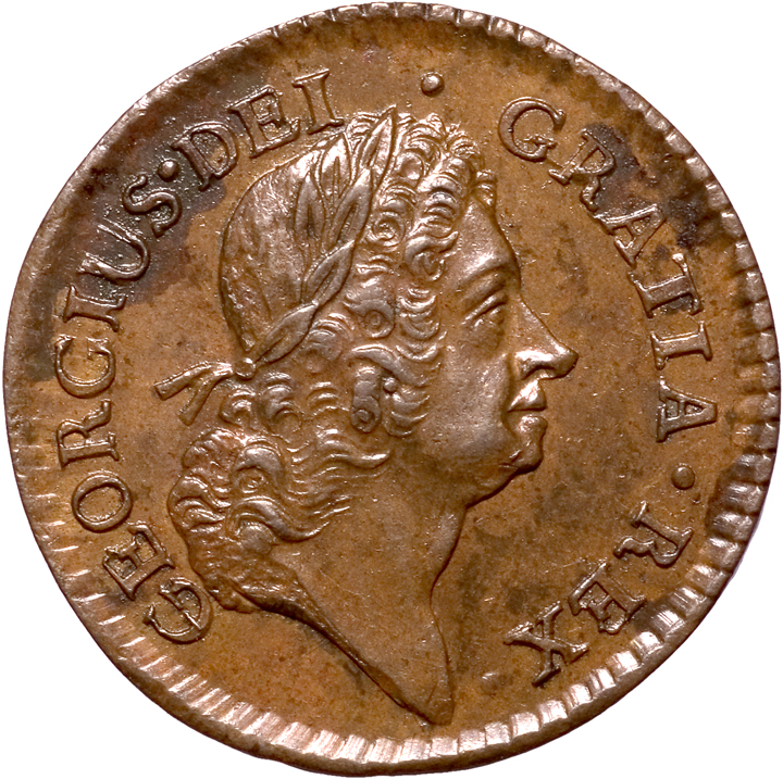 1723 Wood's Hibernia Farthing. DEI GRATIA. REX. Choice Uncirculated.