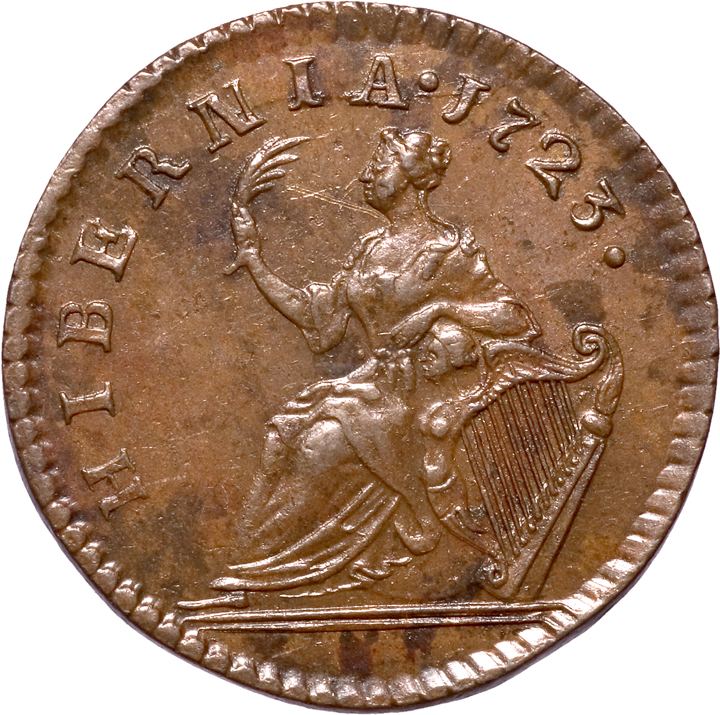 Choice Uncirculated 1723 Wood's Hibernia Farthing