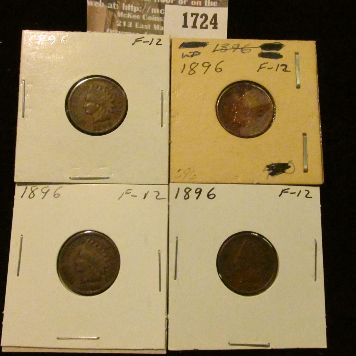 (4) 1896 Indian Head Cents. F-12.