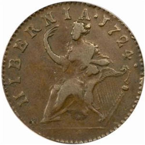 1724 Hibernia Halfpenny. Breen-166. Stop After Date. EF-40 (PCGS).