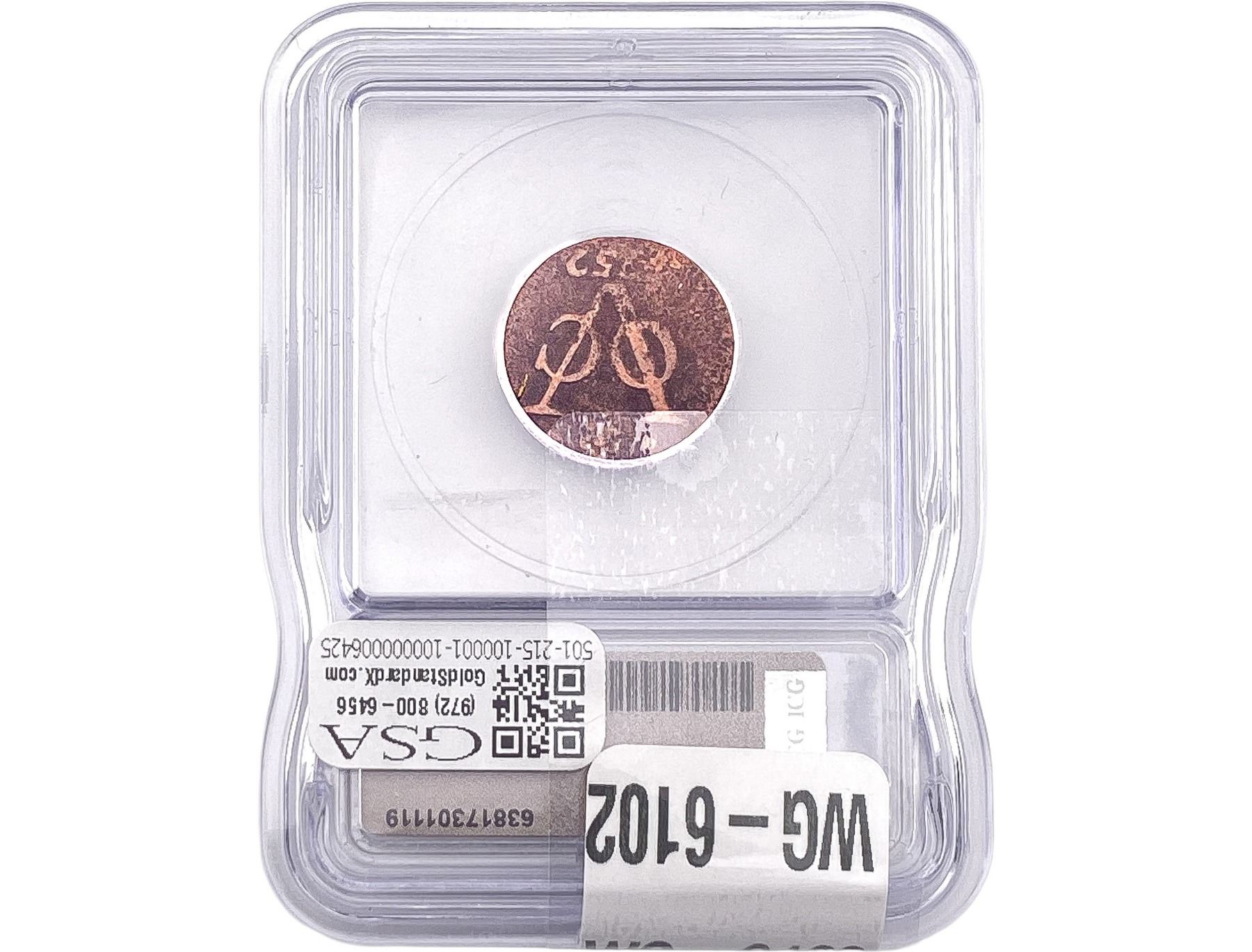 l. All non-certified coins and currency are guaranteed genuine, but are not guaranteed as to grade, since grading is a matter of opinion, an art and not a science, and therefore the description rendered by GSA or any third-party grading service may not agree with the opinion of others (including trained experts), and the same expert may not grade the same item with the same grade at two different times. GSA may, but is not obligated to, express an opinion as to non-certified numismatic items, in GSA’s opinion, or by its employees’ experience and the current interpretation of the American Numismatic Association’s standards as of the date the catalog was prepared. There is no guarantee or warranty expressed or implied that the grading opinions utilized by GSA, if any, will meet the standards of any grading service at any time in the future.