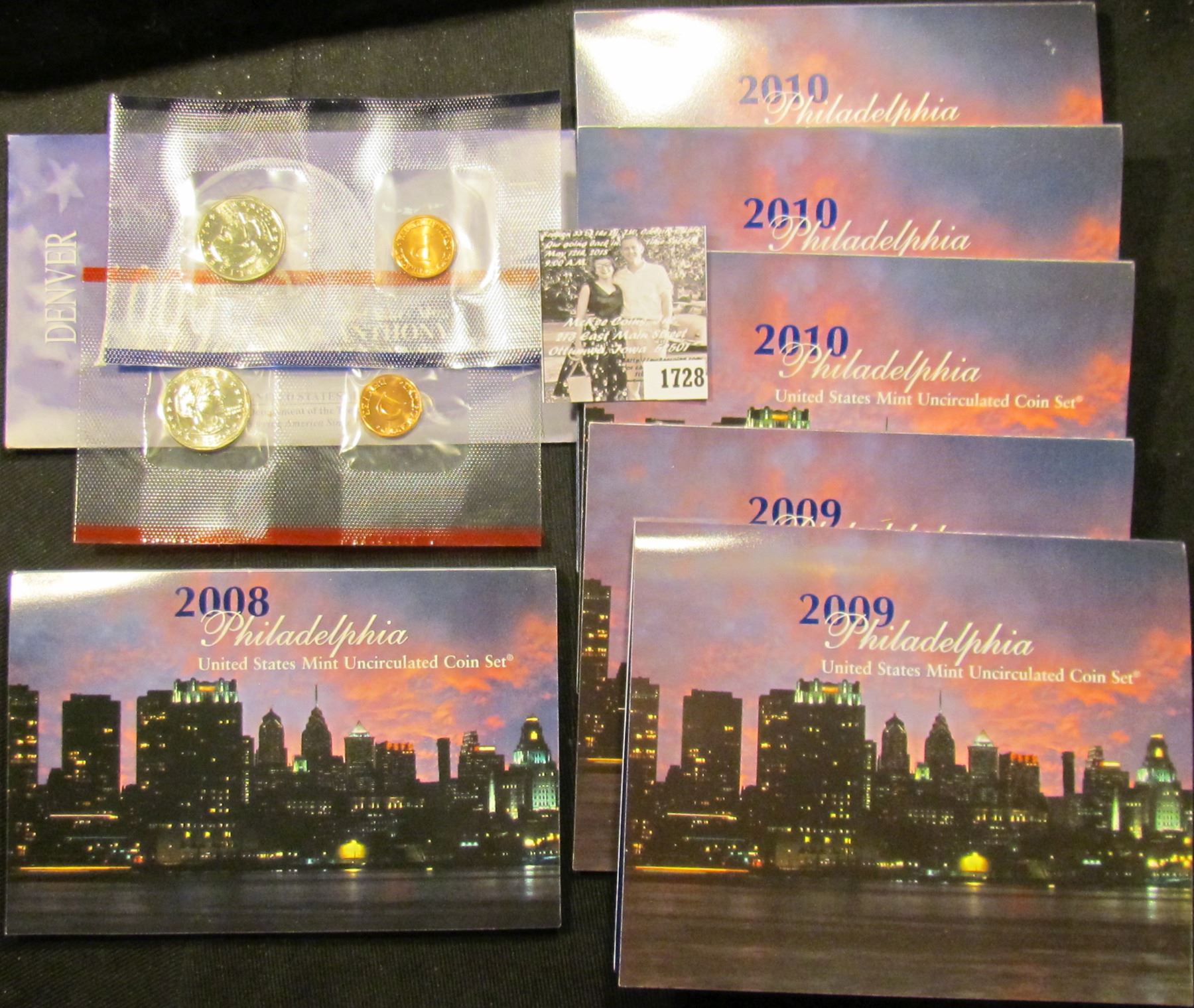 1728 . 1999 P & D Susan B. Anthony Dollars, BU in original envelope of issue; 2008 Philadelphia Mint Set; (2) 2009 Philadelphia Mint Sets; & (3) 2010 Philadelphia Mint Sets. All in original holders. (total face value $44.52)