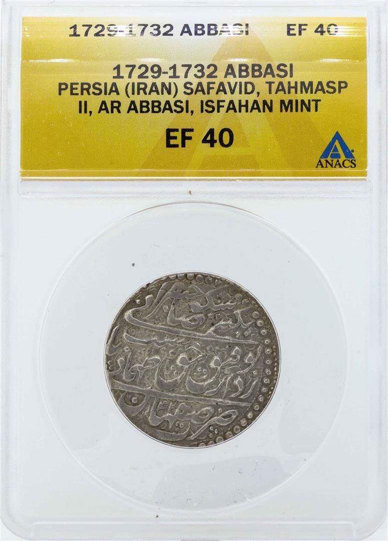 One 1729-1732 Persia Safavid Abbasi Coin ANACS EF40. ANACS Certified.