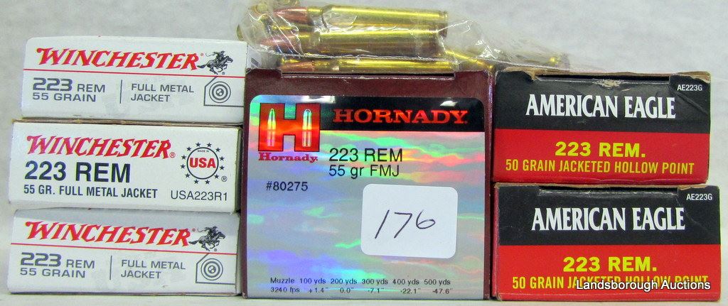 HORNADY 55 GRN - 50 PCES; WINCHESTER 55 GRN FMJ - 60 PCES; AMERICAN EAGLE 50 GRN - 40 PCES; LOOSE 23 PCES.