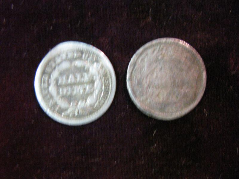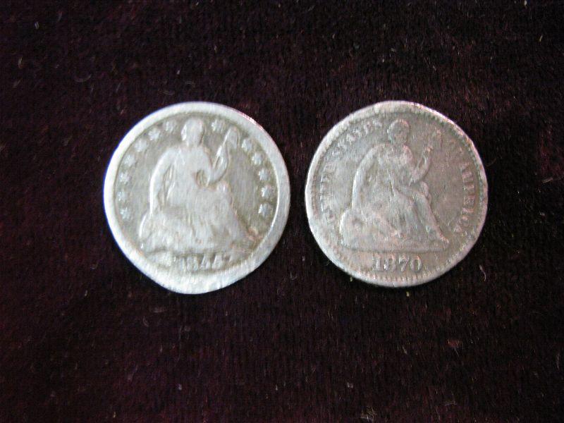 1734. 1853 & 1870 Seated Liberty Half Dimes. Both lightly damaged.