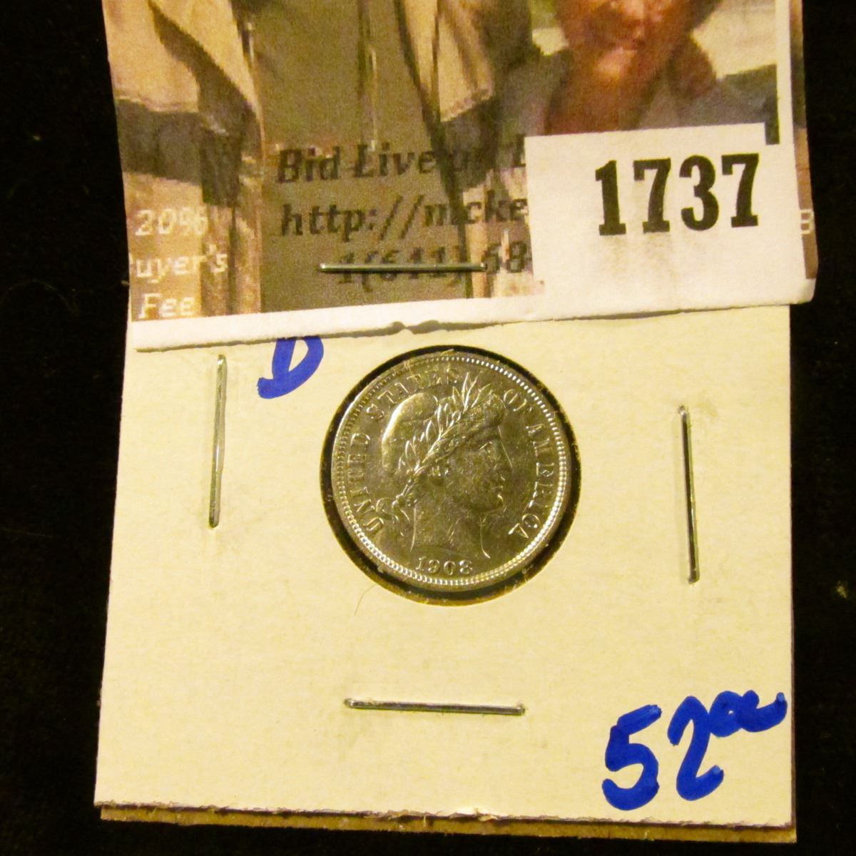 1908-D Barber Dime With Full Rims With Cartwheels Visible and Full Liberty