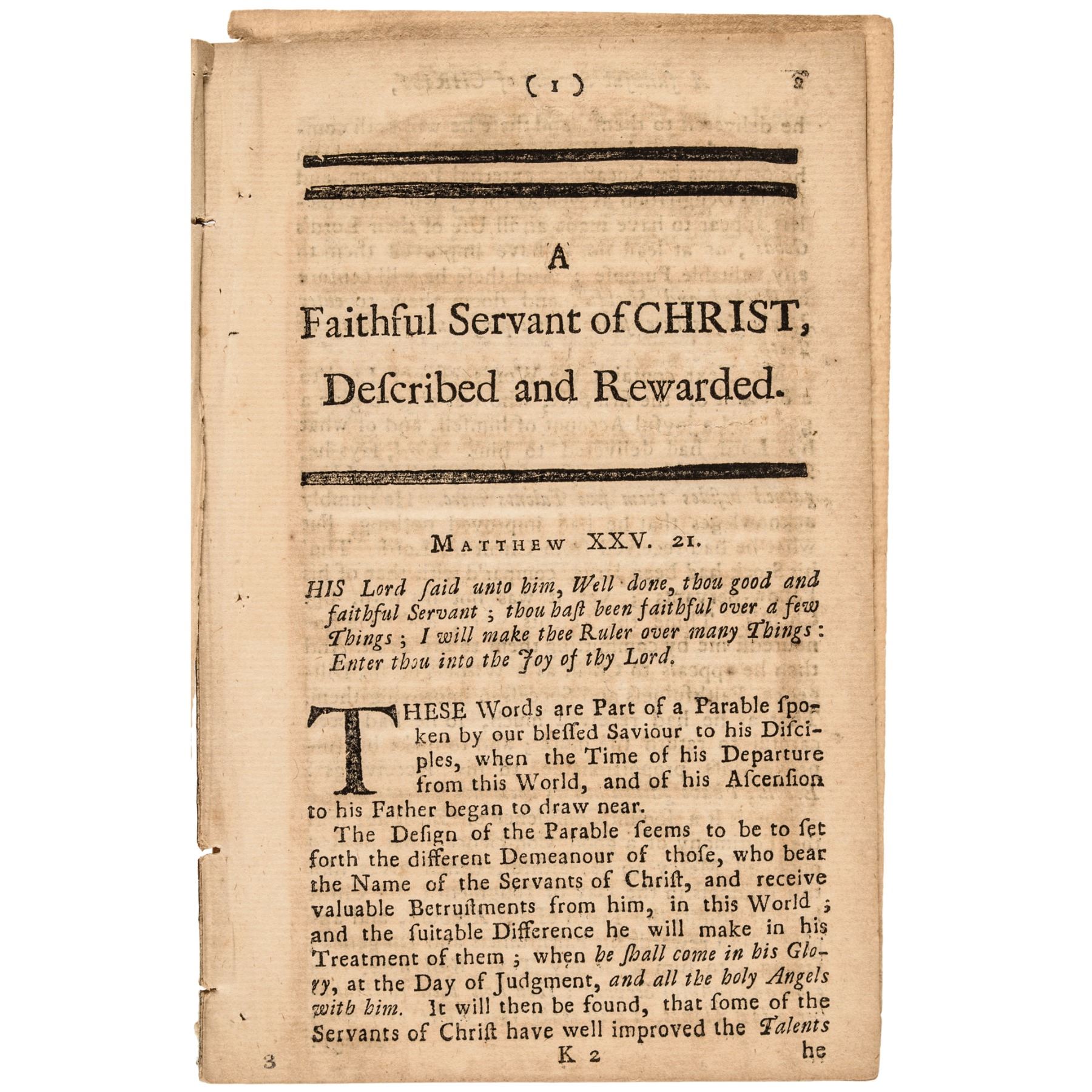 1737 Boston, Imprint titled, “A Sermon Preached at the Tuesday Lecture in HARVARD COLLEGE, after the Funeral of the Reverend Mr. Benjamin Wadsworth” (President of Harvard College) by Edward Wigglesworth, D.D., Complete, Choice Very Fine.