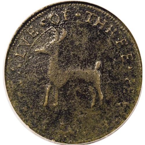 <B>1737 COPPER Higley Copper, CONNECTICVT VF25 PCGS.</B></I> Crosby-18, Breen-238, Freidus 1.2-A. 130.4 grains. The CONNECTICVT is the first Higley variety, struck before presumed local complaints compelled the change in the obverse legend, from THE VALVE OF THREE PENCE to VALVE ME AS YOU PLEASE. The reverse legend changed as well on later varieties, from CONNECTICVT to I AM GOOD COPPER, and finally to J CUT MY WAY THROUGH. The latter variety bore an ax instead of the three hammers. Dr. Samuel Higley had a degree from Yale, and owned a copper mine. Coinage apparently continued after Higley's untimely death in a 1737 shipwreck, since a 1739-dated variety is known. The present example is boldly detailed for a Higley copper. Except for THE, the obverse legends are clear. The deer and hammers have pleasing definition, and the reverse legends are bold aside from the bottom of the 737 in the date. The surfaces are moderately granular, as Higleys are typically encountered, and the color alternates from golden-brown to ebony. A pair of old curved pinscratches reach the deer's antlers. Listed on page 46 of the 2007 <I>Guide Book.</B></I><BR><I>Ex: F.C.C. Boyd; John J. Ford, Jr. Collection, Part II (Stack's, 5/04), lot 268; San Francisco ANA (Heritage, 7/05), lot 10078.</B></I><BR><I>From The Troy Wiseman Collection, Part Two.</B></I><BR><BR><b>Shipping:</b> Coin/Currency (<a target="_blank" href="http://www.heritageauctions.com/common/shipping.php">view shipping information</a>)