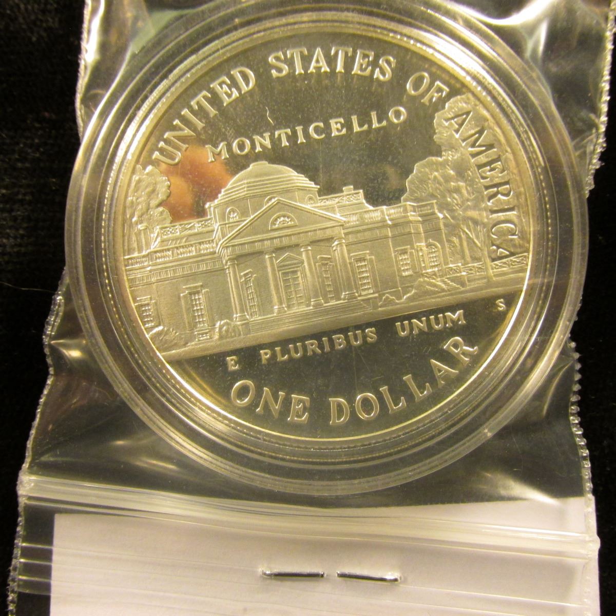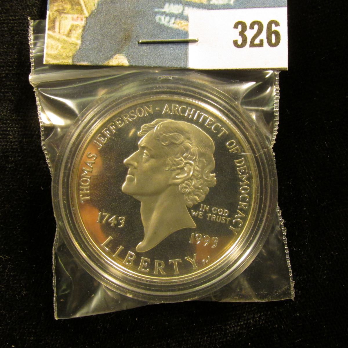 1743-1993 S U.S. Cameo Proof Silver Dollar "Thomas Jefferson -Architect of Democracy", encapsulated.