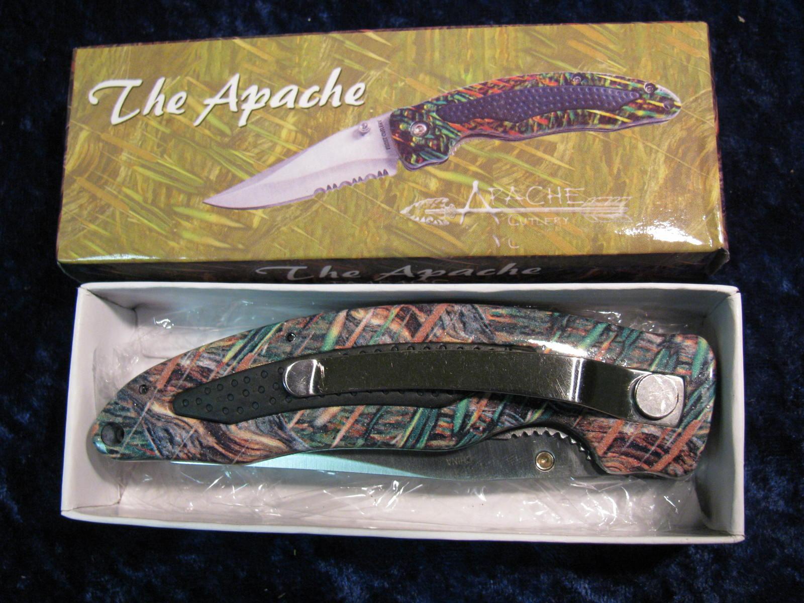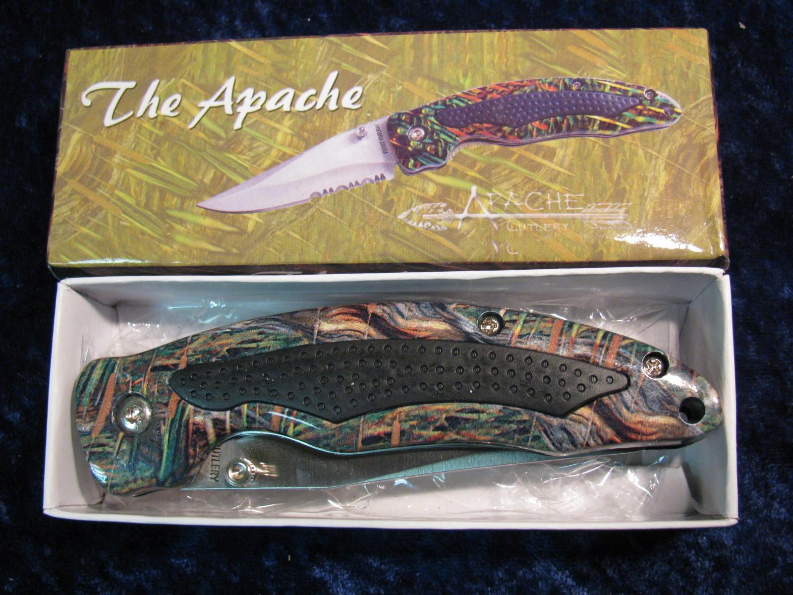 1743. Apache Cutlery. The Apache 4 1/2” Folder ½ Surated Blade.