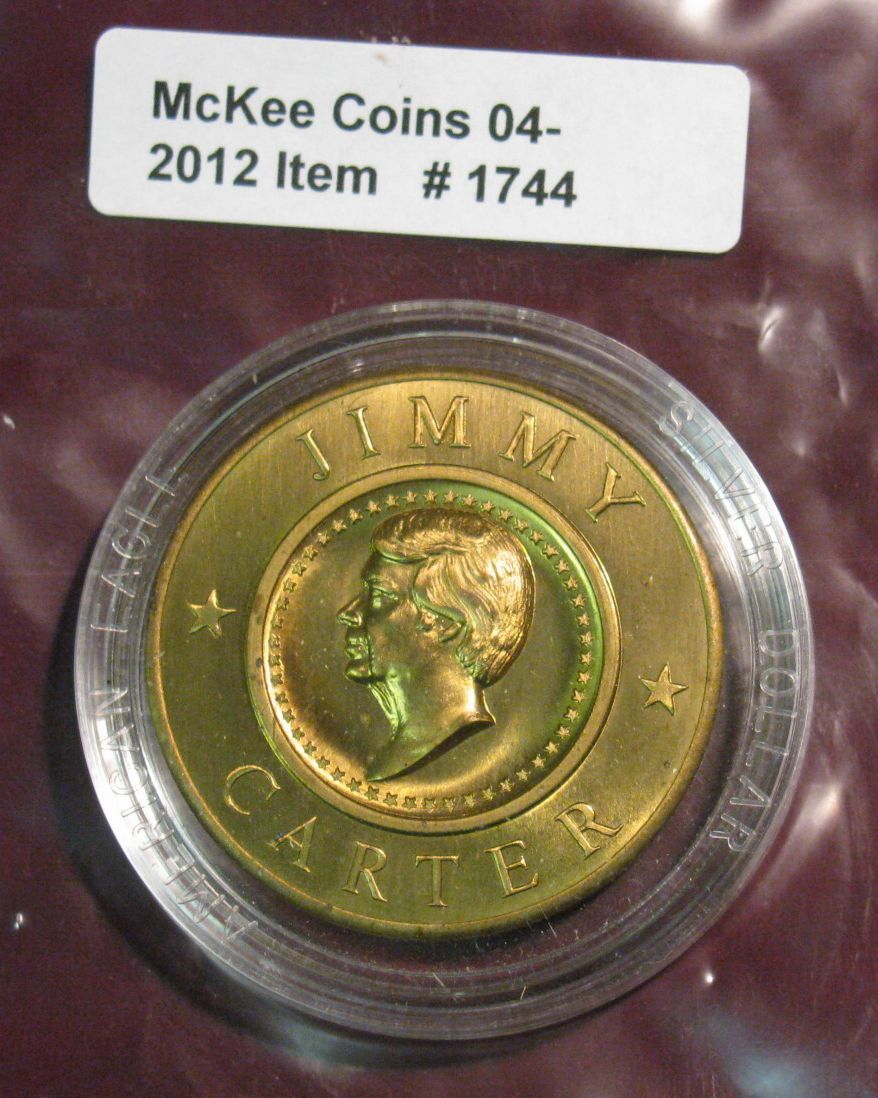 1744. Jimmy Carter 39th President Bronze Medal. Obv High Relief Bust & Rev. Presidential Seal.