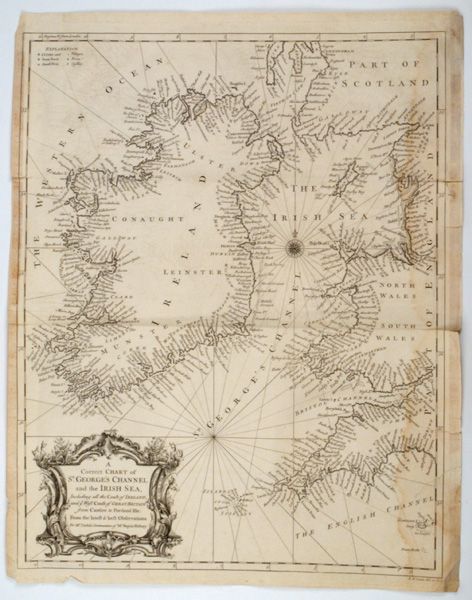 An edition of Seale's 18th Century Irish Sea Map titles 'A correct chart of St.George's Channel and the Irish Sea Including all the Coast of Ireland and the West Coast of Great Britain from Cantire to Portland Isle. From the latest and best observations.For Mr Tindal's Continuation of Rapin's History' Also with a similar chart of the English Channel also from Rapin's History of England. (2 items)