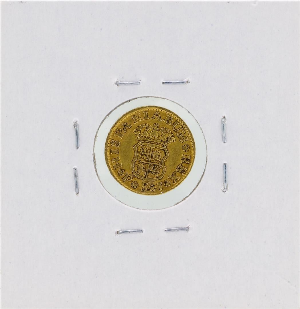 One 1748 Ferdinand VI Spanish 1/2 Escudos Gold Coin.