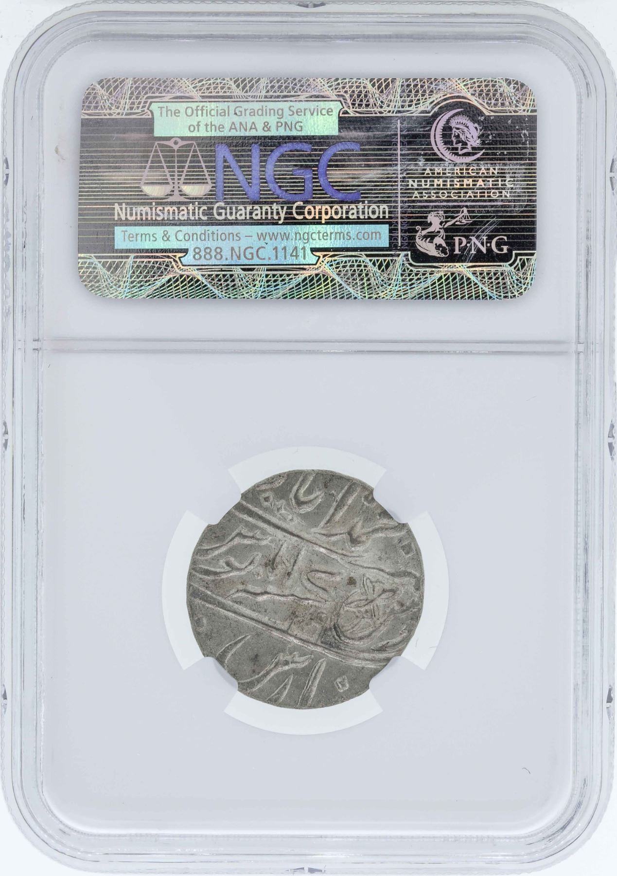 One 1749 India Rupee Bengal Presidency Plain Edge Coin NGC MS64.