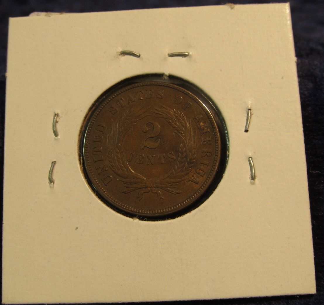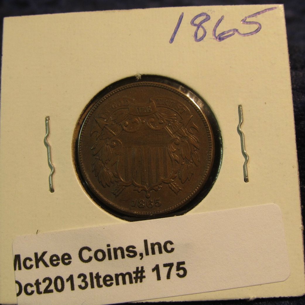 175. 1865 U.S. Two Cent Piece. EF 40. Redbook value $50.00.