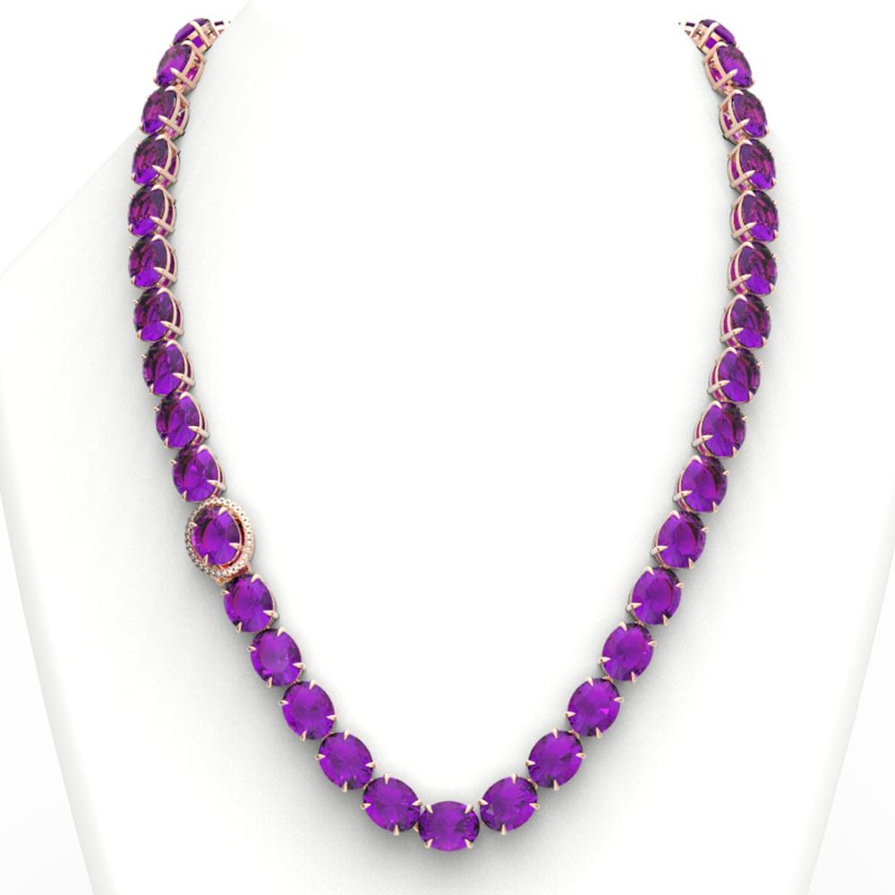 REF-483N6F - SKU: 22285 ---- 175 ctw Amethyst & Diamond Micro Eternity Necklace 14k Rose Gold