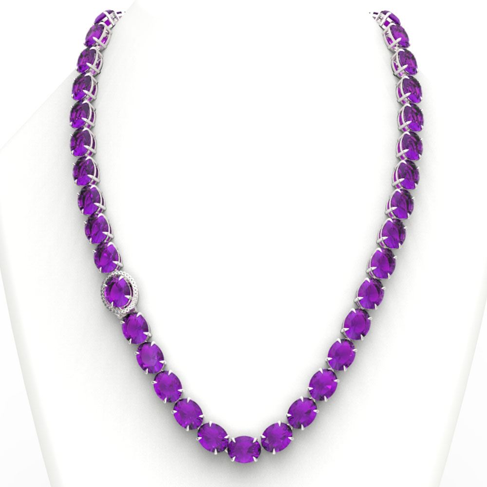 REF-483M6G - SKU: 22286 ---- 175 ctw Amethyst & Diamond Micro Eternity Necklace 14k White Gold