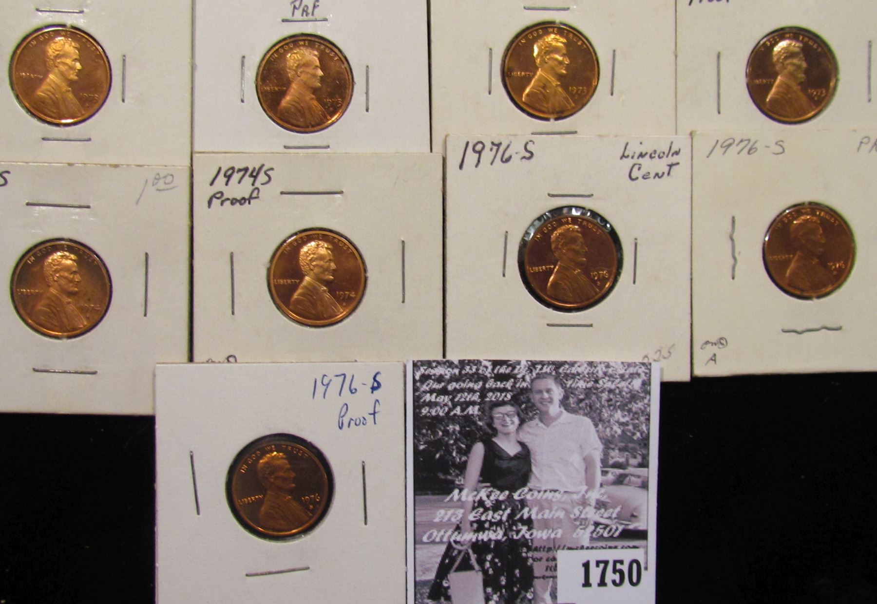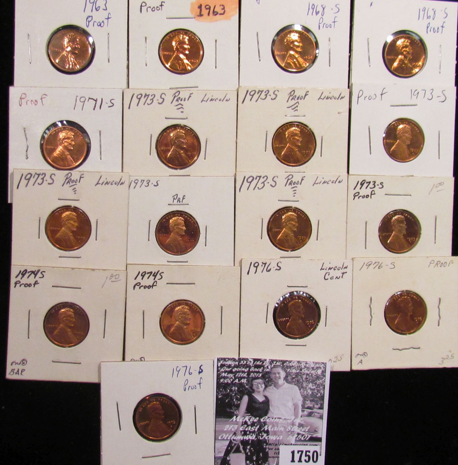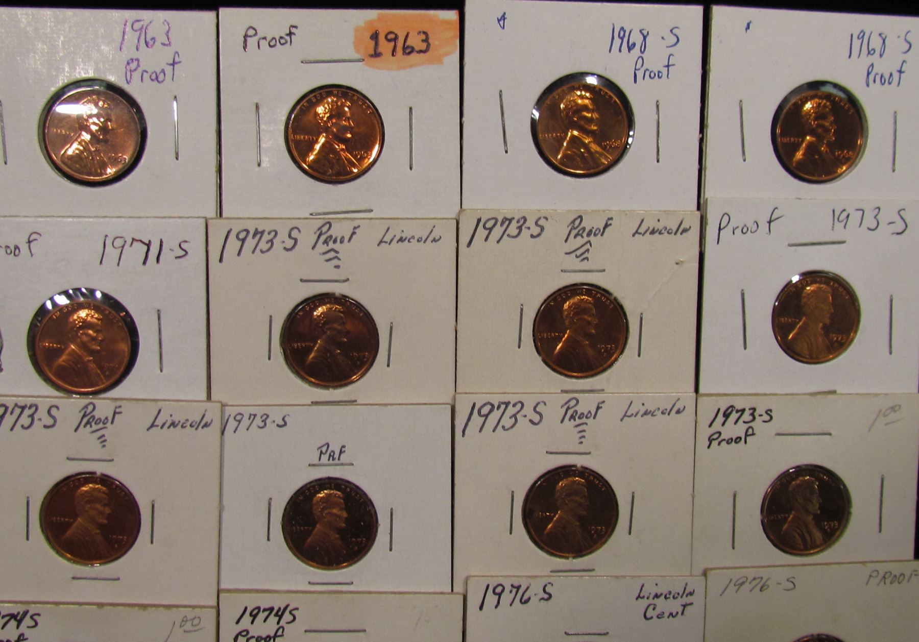1750 . (2) 1963P, (2) 68S, 71S, (7) 73S, (2) 74S, & (3) 76S Proof Lincoln Cents.