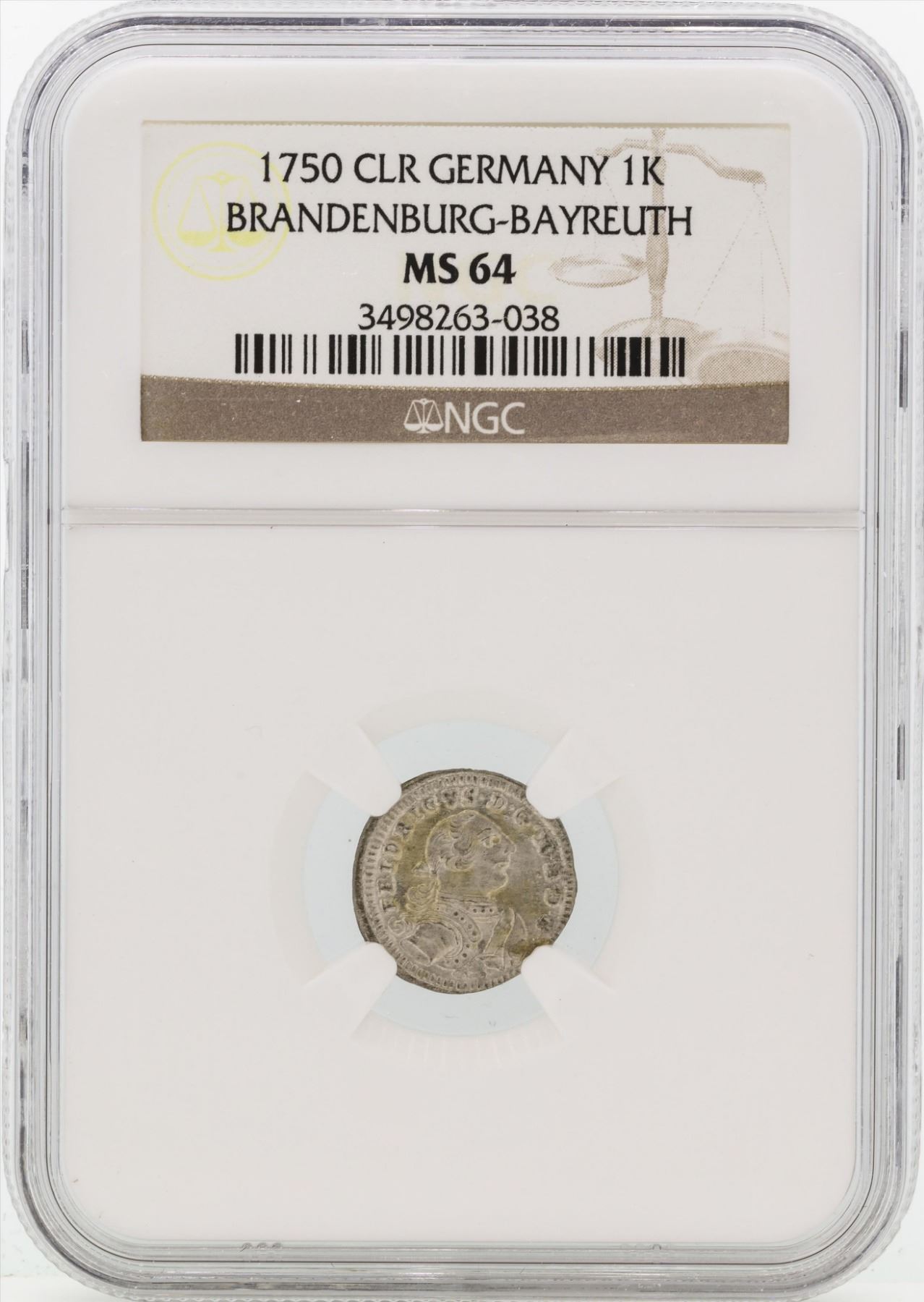 One 1750 Germany Bradenburg-Bayreuth 1 Kreutzer Coin NGC MS64.