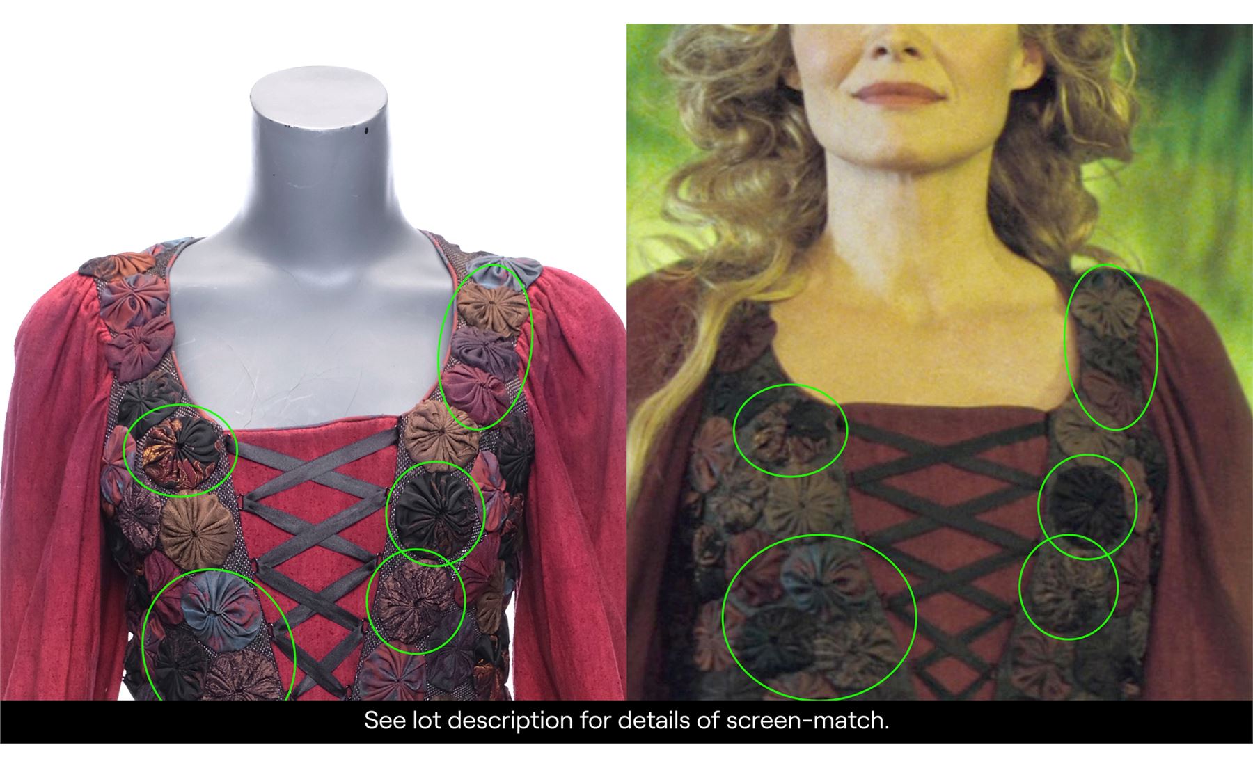 STARDUST (2007) - Lamia's (Michelle Pfeiffer) Screen-Matched Innkeeper Costume - Lamia's (Michelle Pfeiffer) screen-matched innkeeper costume from Matthew Vaughn's Stardust. The evil witch Lamia wore her costume while posing as an innkeeper's wife to trick Yvaine (Claire Danes) and cut out her heart.