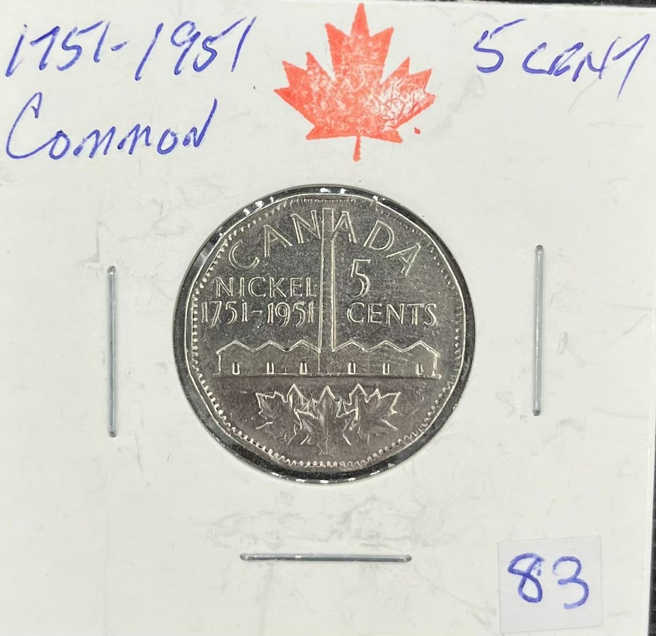 1751-1951 5 cent Common 300th Anniversary of Nickel ore in Canada Look closely at this coin