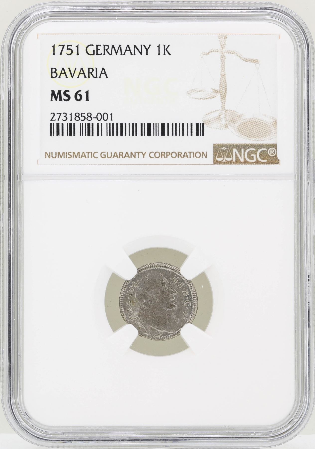 One 1751 Germany Kreuzer Bavaria Coin NGC MS61.