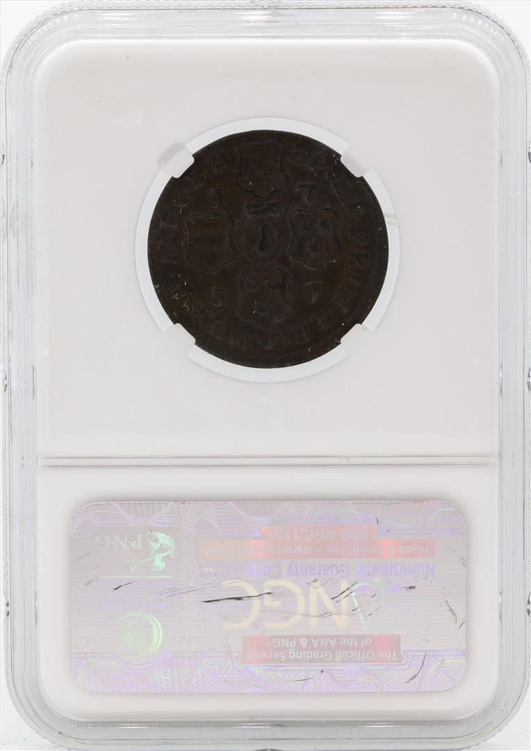 One 1751 Liege 2 Liards Copper Coin NGC AU55 BN. NGC Certified.