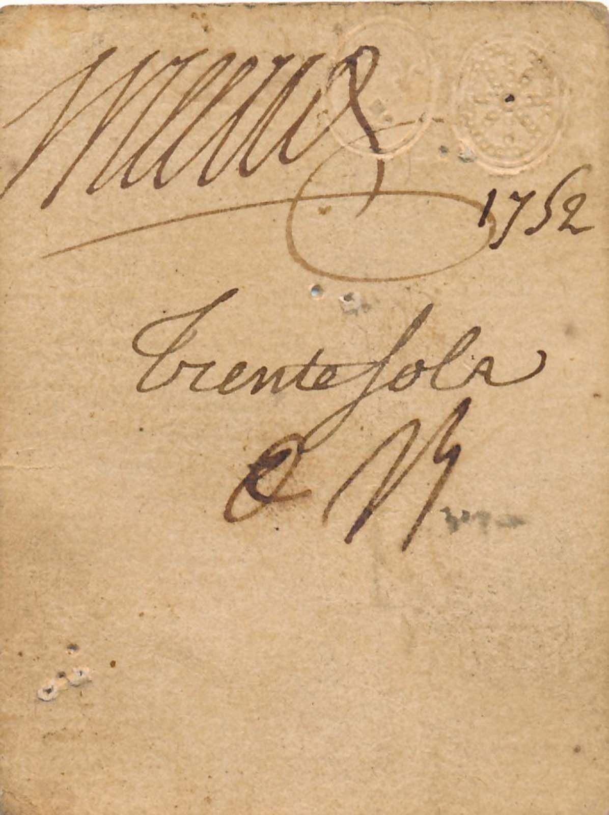 This item is 44 mm.x 58 mm.rectangle Card Money similar to known pieces in the Bank of Canada Collection (see Bank of Canada example ID # 1963.0040.0014.000). This note has 8 pins holes, 4 to the lower left-hand side, 2 just above the word "trente" and 2 just under the right seal. Note the seal has changed from the previous notes to a snow flake design. The right seal is the 3 Fleurs de Lys but without the crown and neither seal is inked. The signatures and initials are clean and clear. The overall card is clean, corners a touch rounded but has no folds or rips.