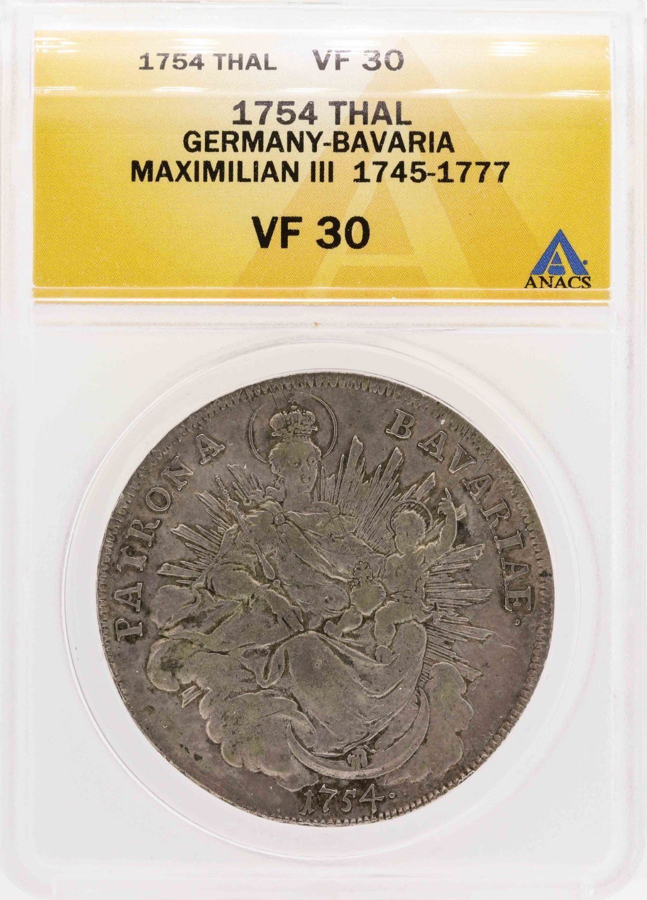 One 1754 Germany-Bavaria Maximilian III Thaler Coin ANACS VF30.