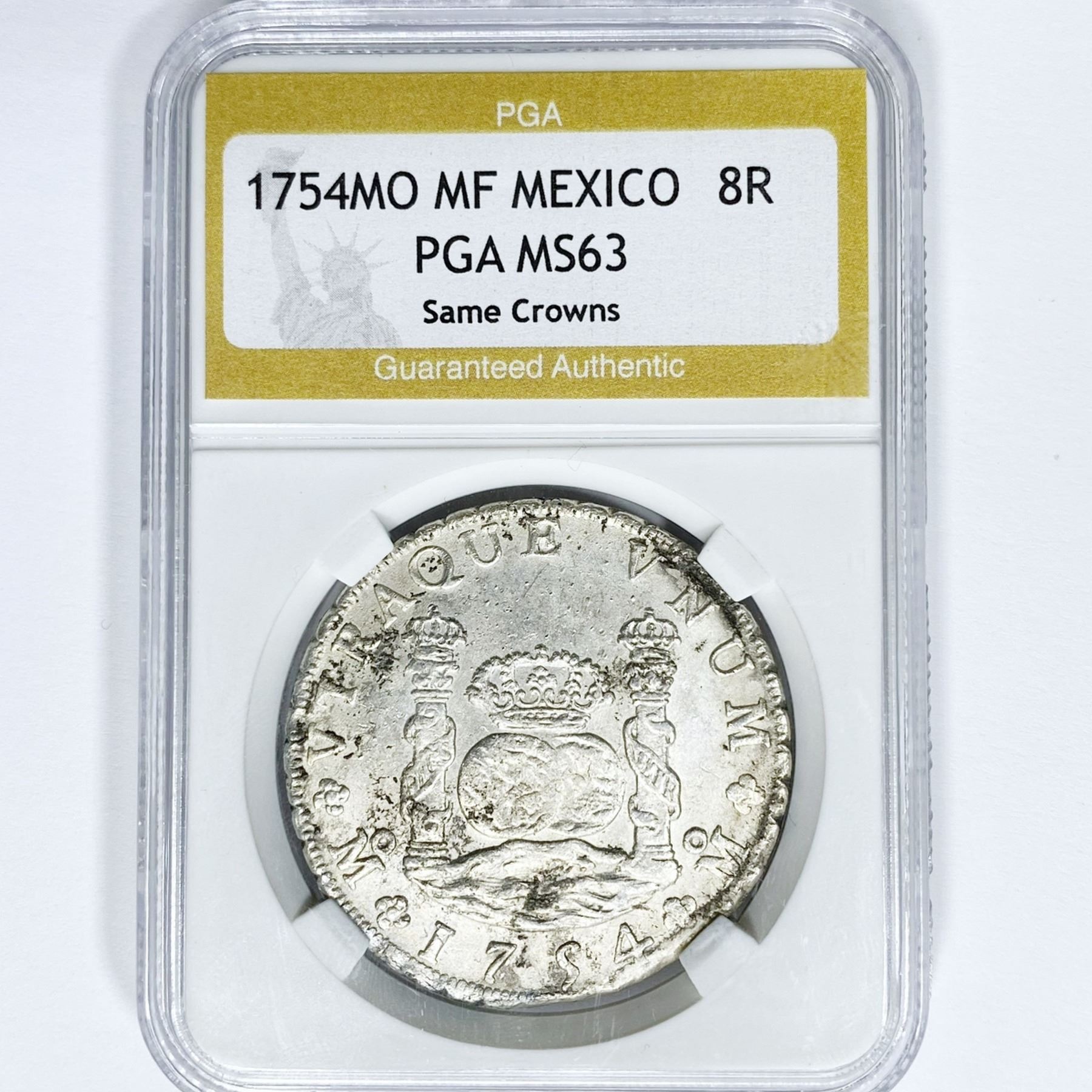 1754MO MF Mexico 8 Reales PGA-MS63 Same Crowns