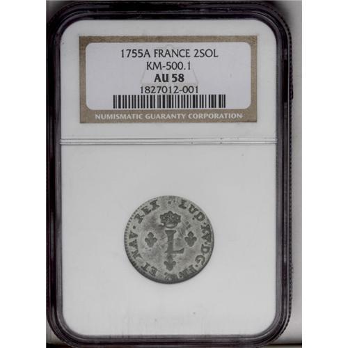 1755-A SOU M French Colonies Sou Marque AU58 NGC. Bree 1755-A[img border='0' src='http://www.heritag