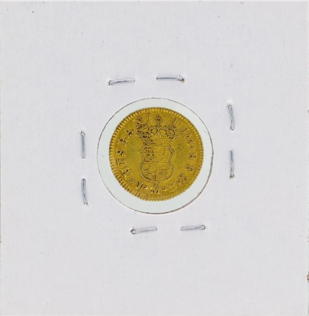 One 1755 Ferdinand VI Spanish 1/2 Escudos Gold Coin.