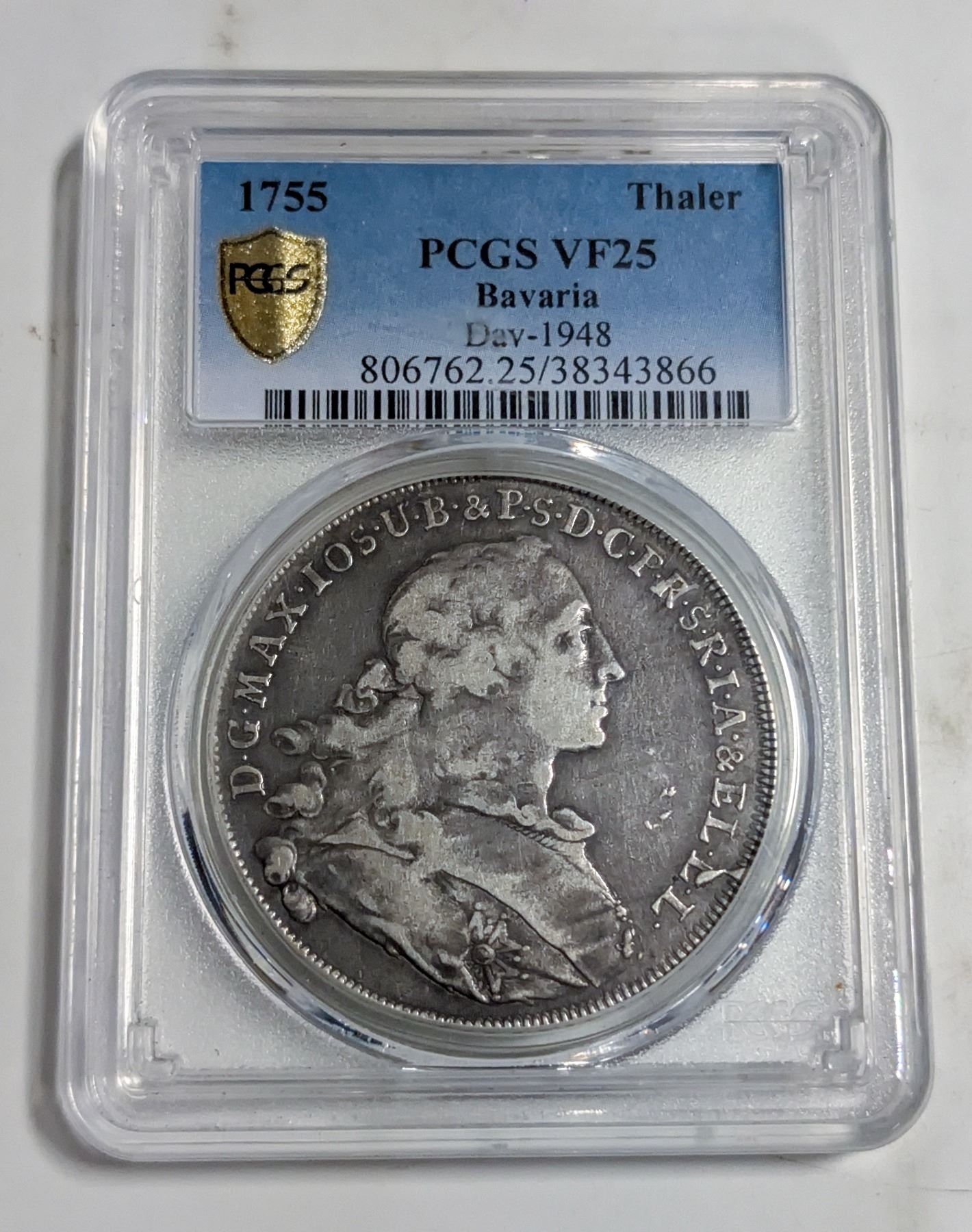 1755 GERMAN STATES BAVARIA SILVER TALER CERTIFIED
