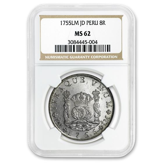 One piece 1755 LM-JD Peru Silver 8 Reales MS-62 NGC