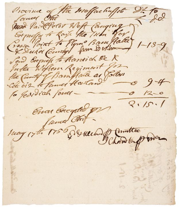 May 17, 1756-Dated French and Indian War Period, Manuscript Document Signed, “James Otis” and “John Chandler,” as Committee for the Province of Massachusetts, Choice Very Fine.