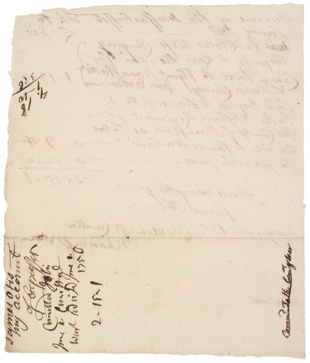 This original document is dated in 1756, at Plymouth, Massachusetts. Here, James Otis and John Chandler have signed a payment receipt for Raising a Regiment of Men to go from Plymouth and Barnstable, to protect Fort Crown Point. It measures 4” x 5” and is very well written in deep brown ink on clean period laid paper, so it is easy to read. This is a rare period document for expenses in the raising of a military regiment to march to Crown Point in the defense of the American colonists.