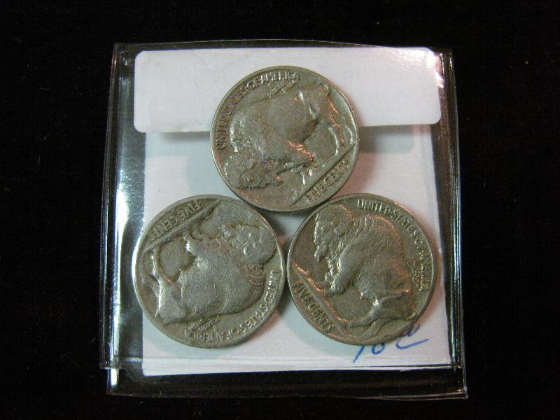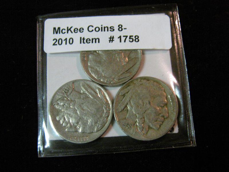1758. 1936 D & (2) 37 P Buffalo Nickels. VF-EF.