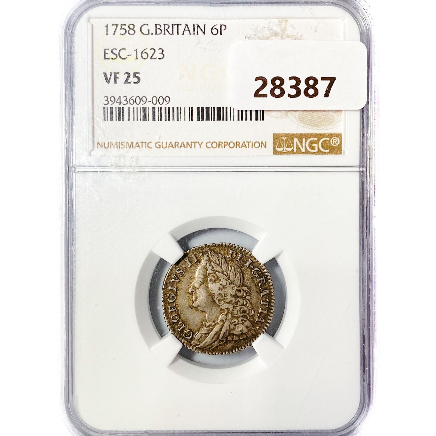 1758 6P .09oz G.Britain Silver NGC VF25 ESC-1623