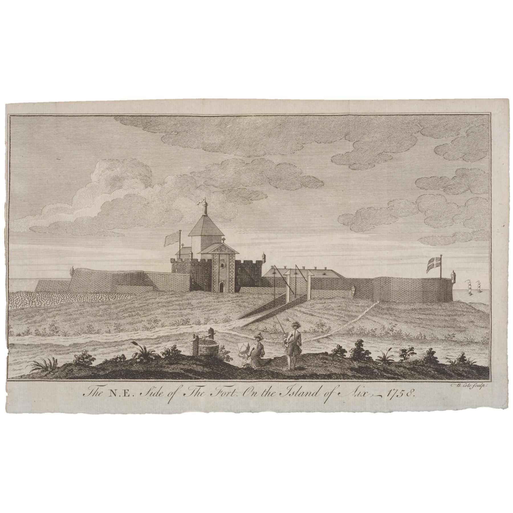 1758 Engraved Print titled: The N.E. Side of The Fort On the Island of d’Aix