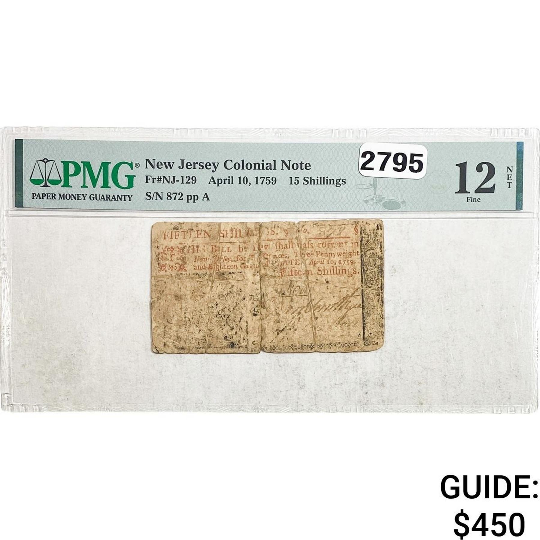 1759 15 Shillings N.J. Colonial Note PMG 12 F