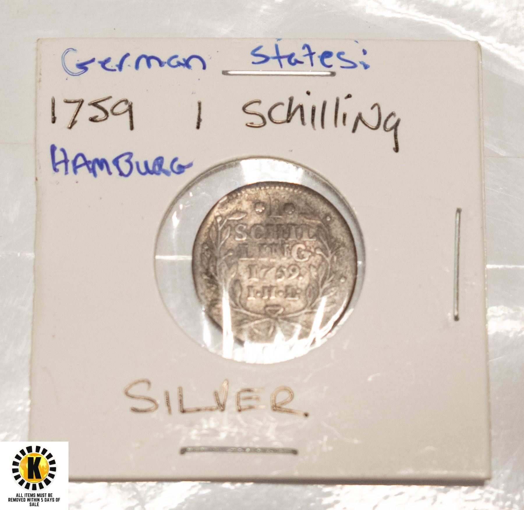 1759 SILVER GERMAN STATES HAMBURG 1 SHILLING