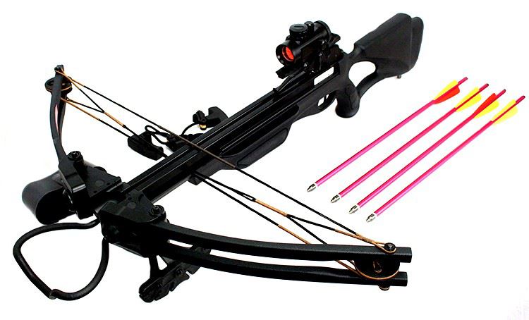 175LBS ALL BLACK COMPOUND HUNTING CROSSBOW COMES W/RED **|**|** 175LBS ALL BLACK COMPOUND HUNTING CROSSBOW COMES W/RED DOT SIGHT, QUIVER, 4 ARROWS, PADDED SLING ROPE, WAX, AND RAIL LUBE