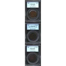 1760 1/2P Hibernia-Voce Populi Halfpenny VG10 PCGS, Breen-226, attractive chocolate-brown color, light verdigris outlines the devices, free from relevant abrasion; 1783 Washington Unity States Cent XF40 PCGS, Baker-1, R.1, the light purple-brown surfaces are smooth, well struck in the centers with weakness of detail at the margins, dies are slightly rotated; and a 1785 Nova Constellatio Copper, Pointed Rays VG8 PCGS, Crosby 5-E, two tone mahogany-brown and orange-brown patina, wear is greater at the borders due to the lack of a protective rim. Listed on pages 28-29, 34, and 59 of the 2003 Guide Book. 3 coins Important notice: We expect to be auctioning lots at the rate of 200-250 per hour. Sometimes eBay Premier live bid software cannot keep up with that pace, so we strongly recommend that you place a realistic proxy bid now as insurance to avoid disappointment. Also please note that all Heritage/CAA lots purchased through eBay Premier carry a 20% Buyer's Premium. Please make sure you read the Terms and Conditions.