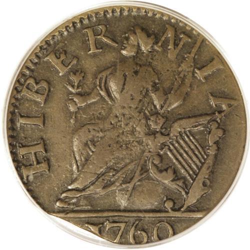 1760 FARTH Hibernia-Voce Populi Farthing, Large Letter
