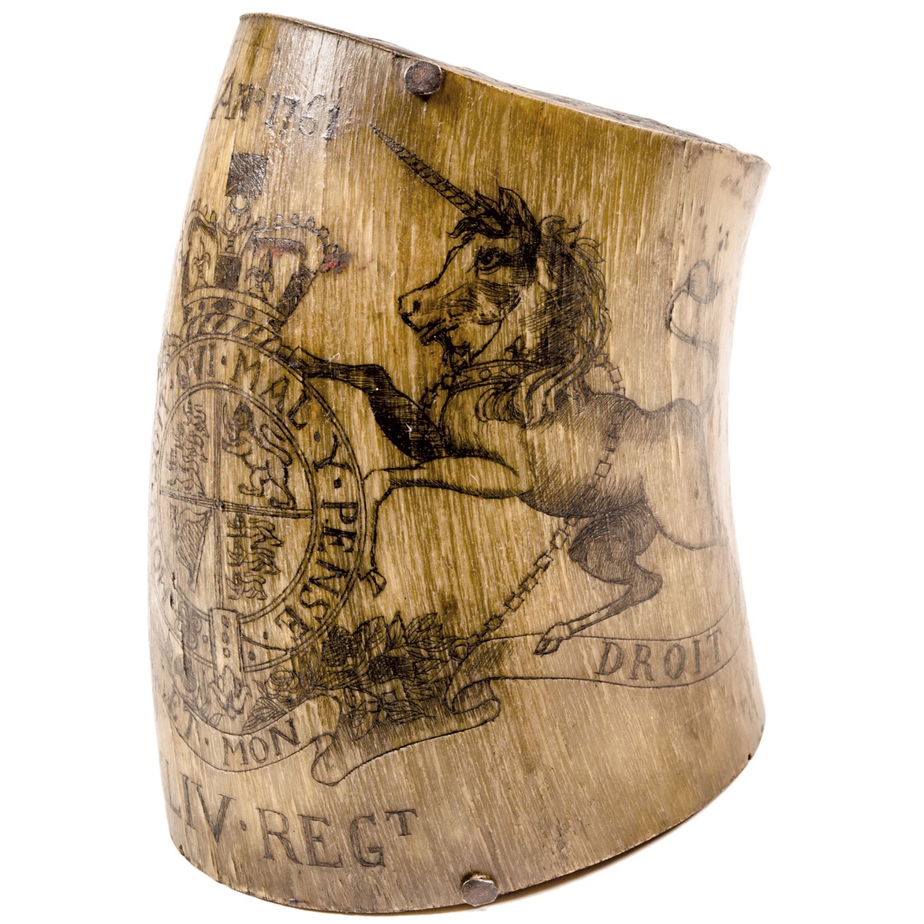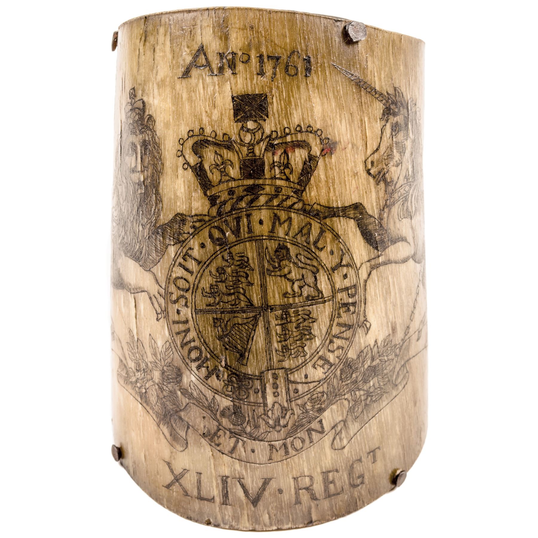 1761-Dated French and Indian War Hand-Engraved Horn British “Personal Container” British 44th Regiment of Foot