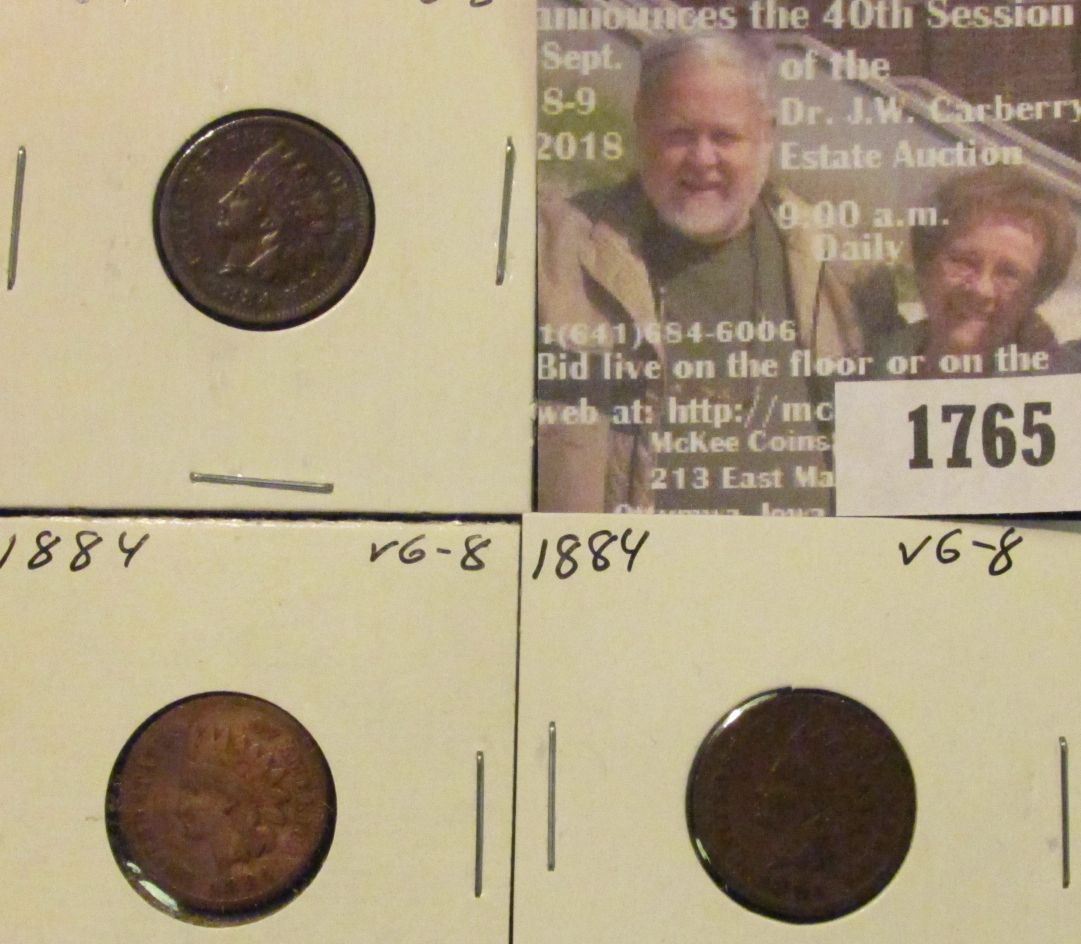 (3) 1884 Indian Head Cents. VG-8.