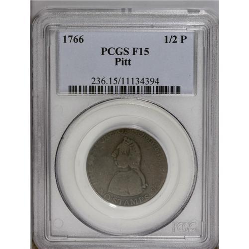 1766 1/2P Pitt Halfpenny Fine 15 PCGS. Pleasing medium 1766[1/2P] Pitt Halfpenny Fine 15 PCGS.