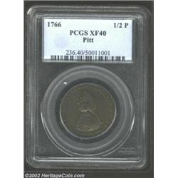 1766 1/2P Pitt Halfpenny XF40 PCGS. Breen-251. Smooth chocolate brown surfaces. There are several pi