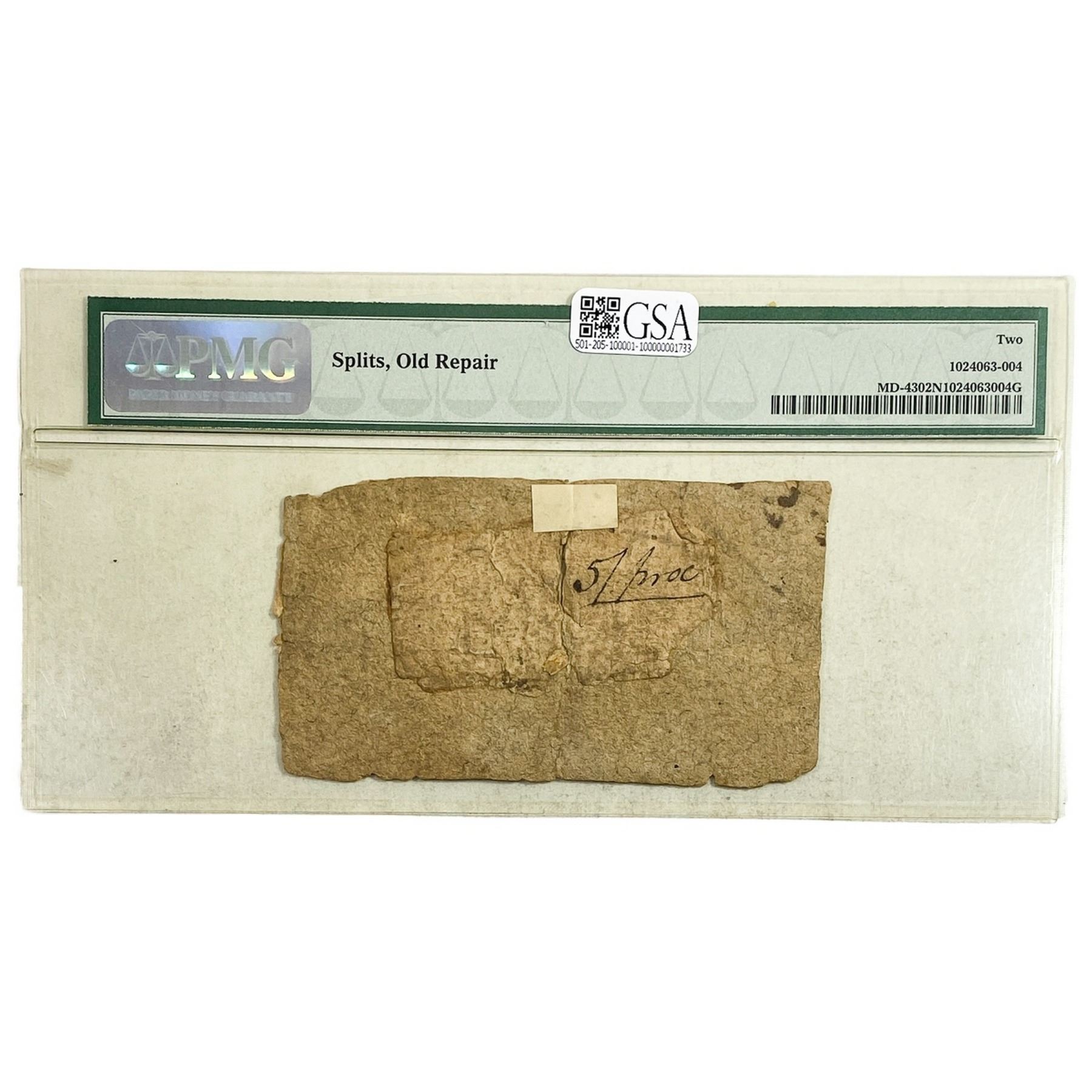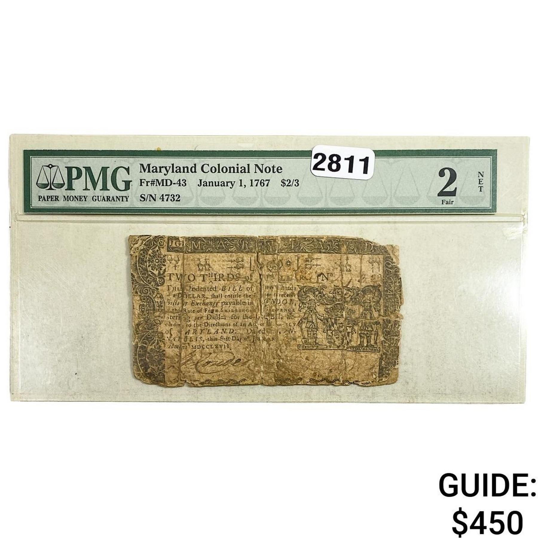 1767 $2/3 Maryland Colonial Note PMG 2 Fair