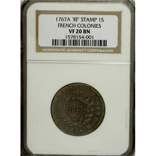 <B>1767-A 9DEN French Colonies Copper Sou VF20 NGC.</B></I> NGC Census: (0/0). PCGS Population (3/35). (#158651)<BR><BR><b>Shipping:</b> Coins & Currency (<a target="_blank" href="http://www.heritageauctions.com/common/shipping.php">view shipping information</a>)